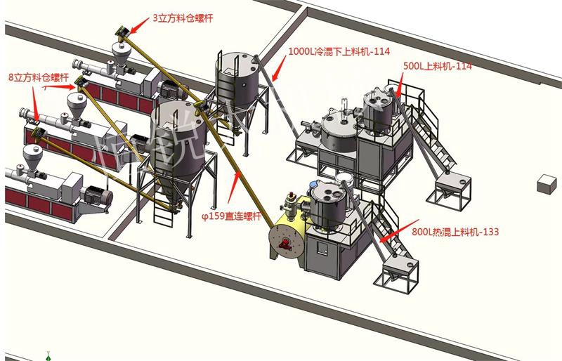 塑料原料儲(chǔ)存、集中投料、干燥輸送到計(jì)量混合